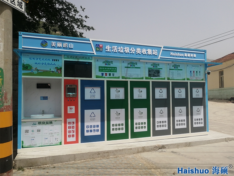 【主要功能】:垃圾稱重功能、線上APP積分兌換、多媒體宣傳服務、投放后洗手清潔、防雨、照明、監(jiān)控還具有殺菌、除蟲、除臭功能等。