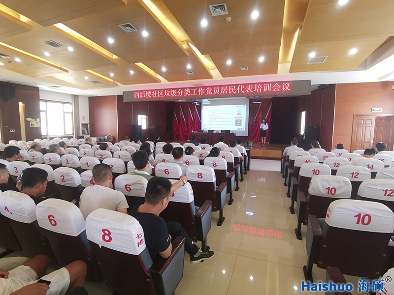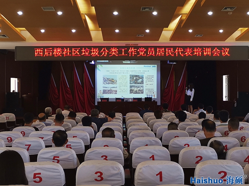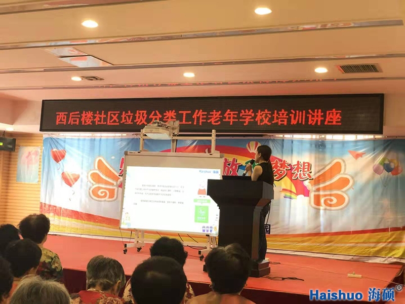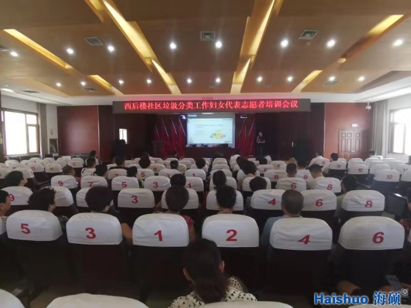 海碩環保先后為西后樓社區的黨員居民代表、婦女代表志愿者、老年學校進行垃圾分類知識培訓。