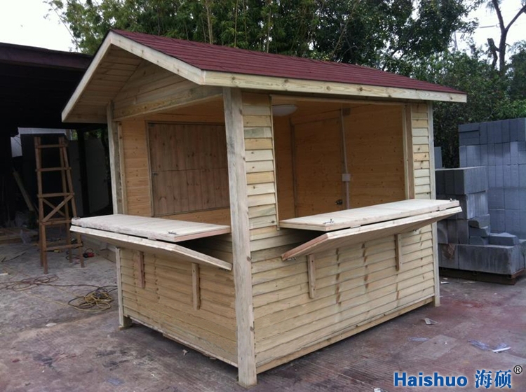 隨著社會生活水平的提高,人們的戶外休閑活動也越來越豐富多彩。小區、公園、廣場等地方是人們必去的活動場所,那里你會看見外觀精美的木質小屋,或售賣零食,或提供休息,您知道這些木屋是怎樣制作的嗎?下面,為您介紹海碩環保生產的一款木質售賣亭。