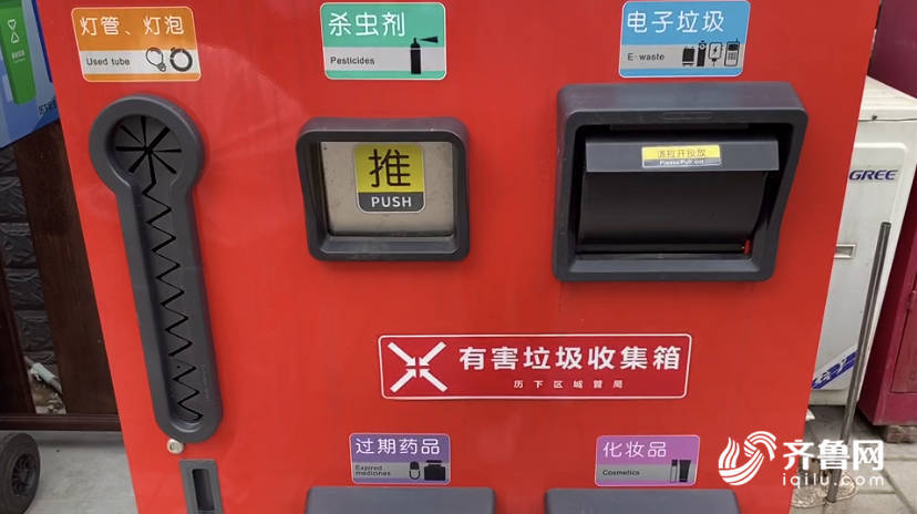 垃圾桶旁的標識牌上,明確標有分類垃圾的清運工作負責主體。據歷下區東關街道城管科垃圾分類工作負責人宋鵬介紹,“每個月第一個星期歷下區城管局會對有害垃圾進行定時收集處理,廚余垃圾則是每日收集清運!